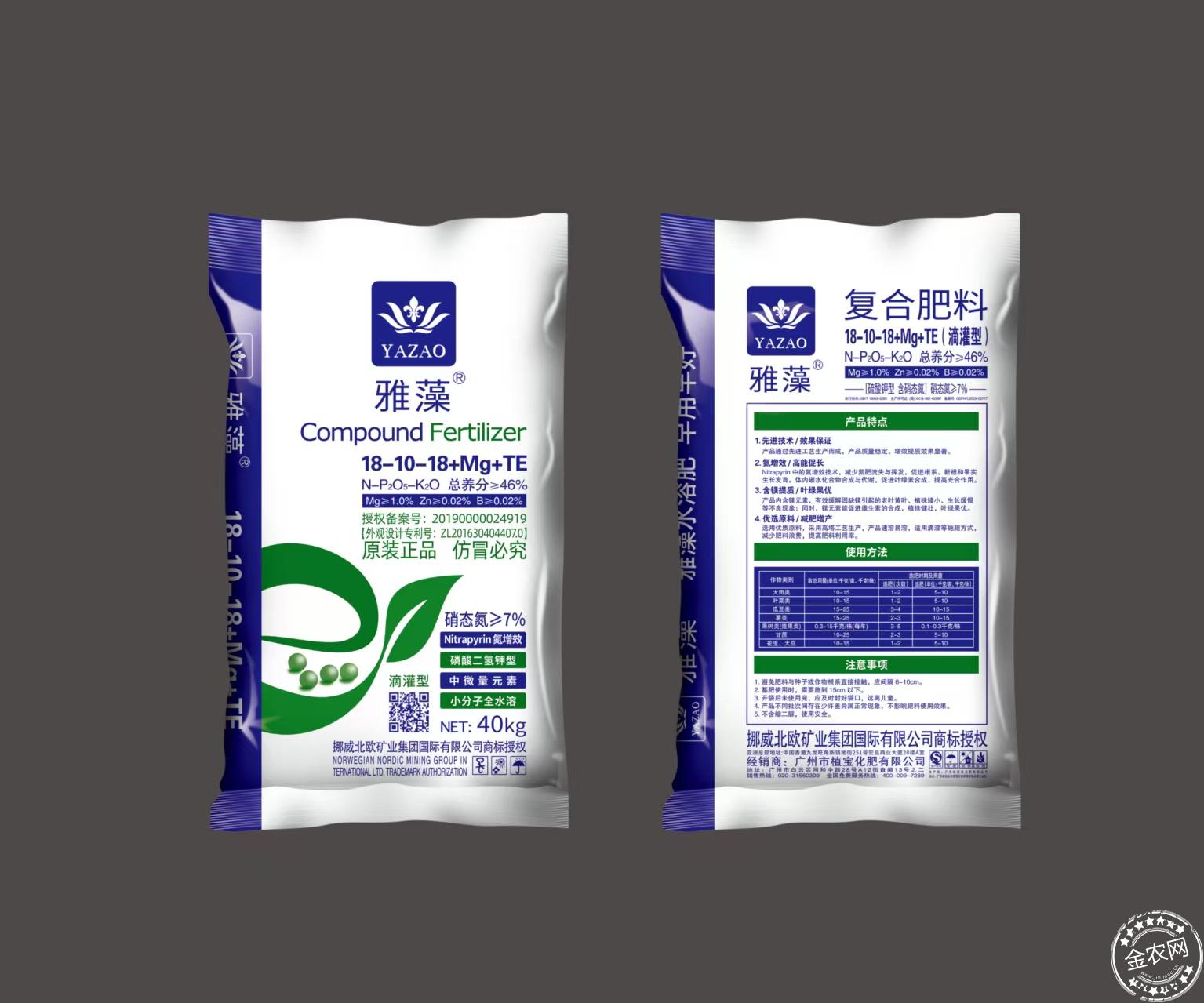 雅藻复合肥料硫酸钾型含硝态氮 18-10-18